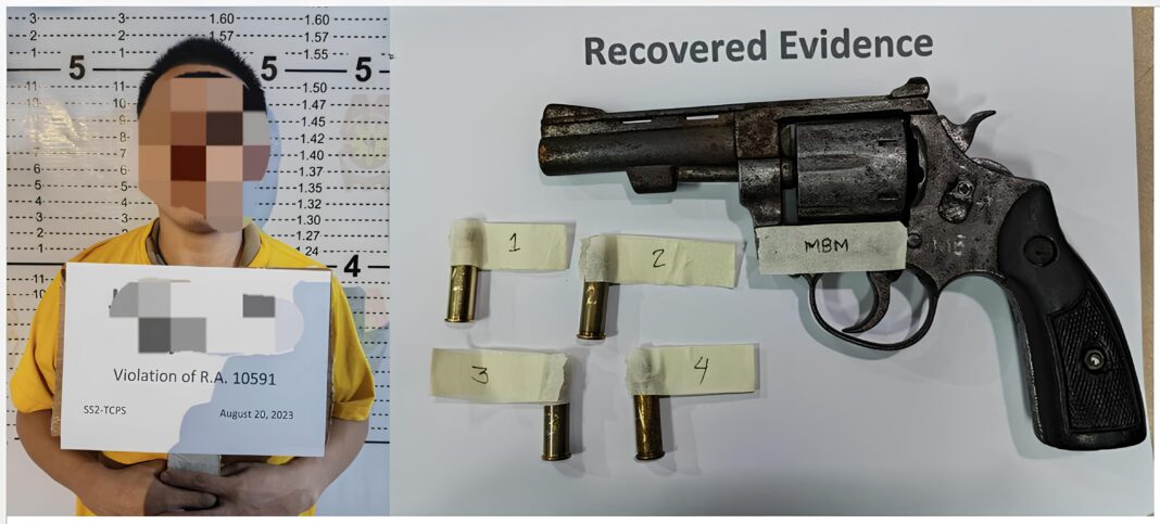 Inaresto si Jerico Corus sa illegal na pagdadala ng cal. 38 pistol na may lamang apat na bala bandang 11:55 Linggo ng gabi na kung saan ay kinatatakutan dahil sa kanyang dalang baril habang maglalakad sa kalsada.