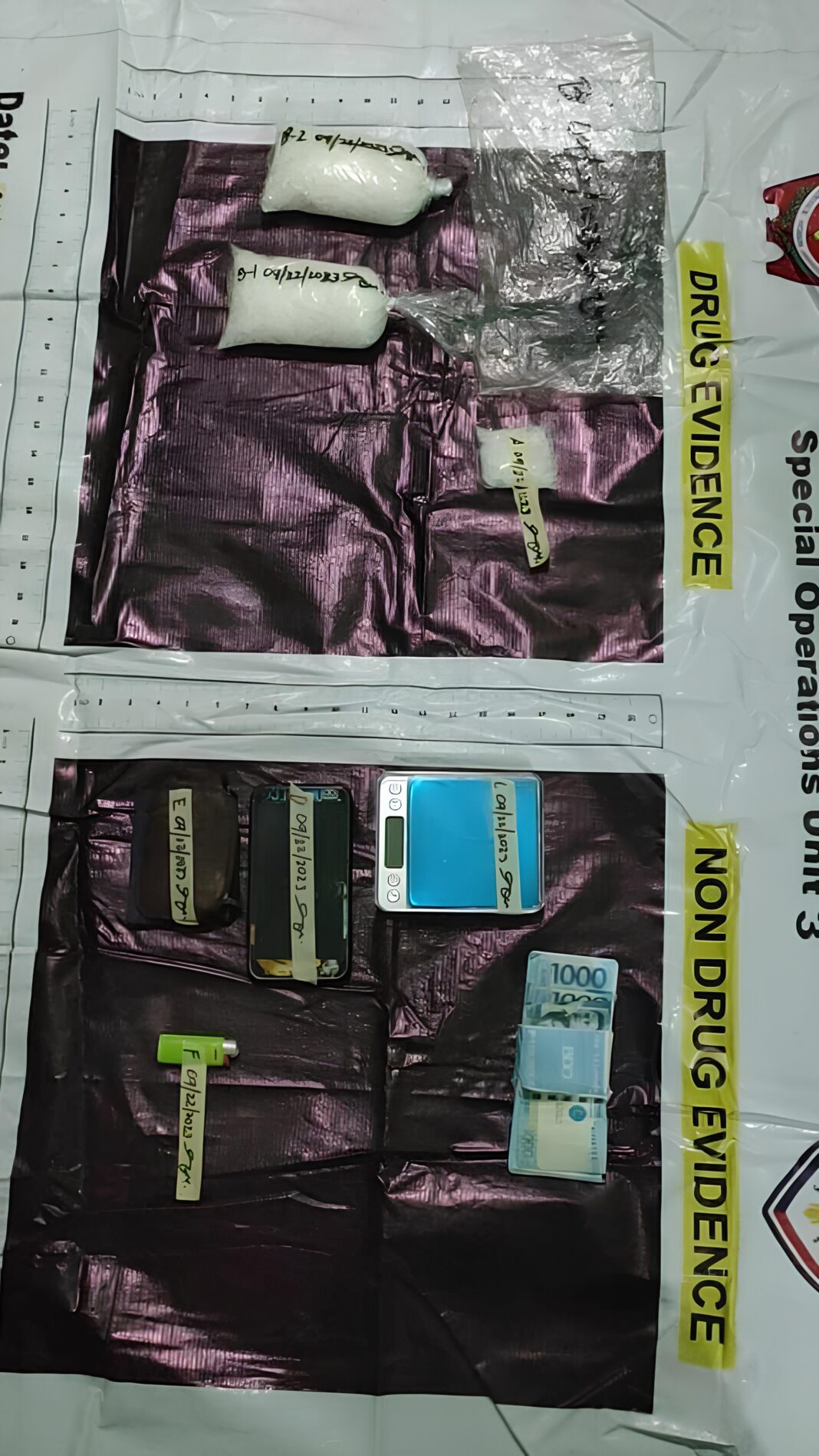 Nakumpiska mula sa mga suspek ang isang genuine P1,000 na may kasamang  bundle ng boodle money na ginamit bilang buy-bust money; isang android phone;  lighter, at dalawang coin purse na may ID.