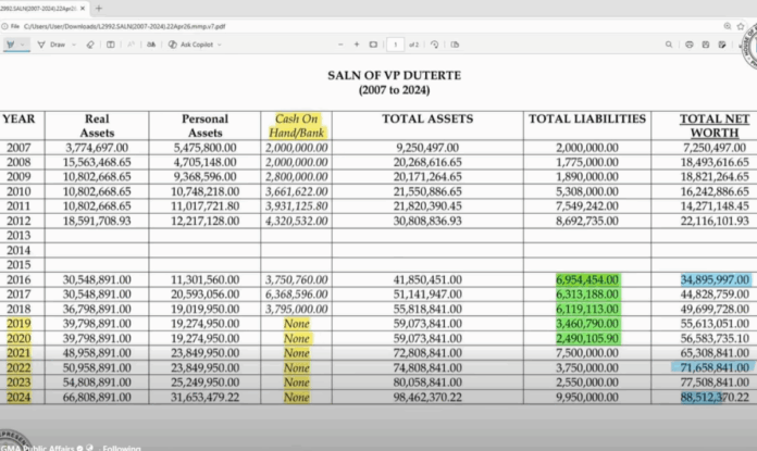 Pahayag ni Manila Representative Joel Chua, miyembro ng nasabing komite, ang nasabing mga transaksyon aniya ay hindi nakalagay sa Statements of Assets, Liabilities, and Net Worth (SALNs) ng pangalawang pangulo.
